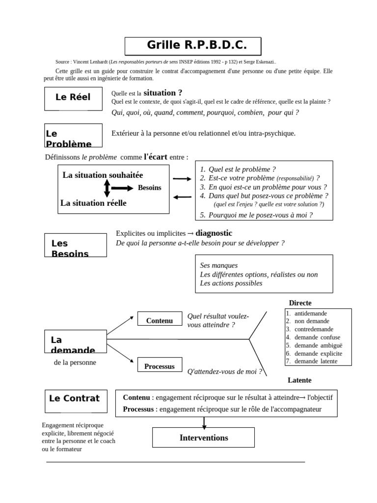 Le RPBDC est un processus de questionnement, proposé par Vincent Lenhardt, pour