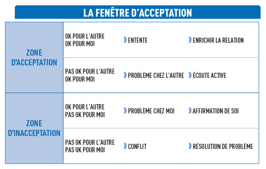• Dans ma zone d’acceptation : si la situation est ok pour l’autre et